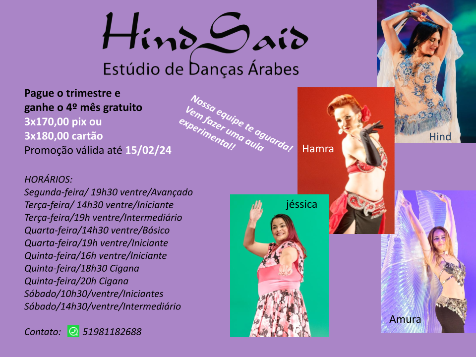 Hind Said estúdio de dança do ventre , tem como objetivo formar excelentes bailarinas